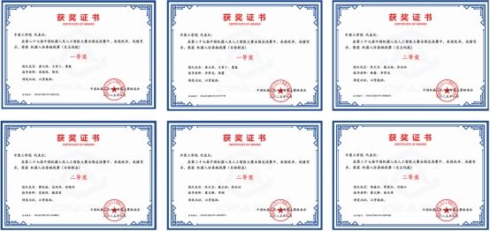 在【机器人任务挑战赛】自主巡航中,龚大伟、王寅卜、曹森队荣获国家一等奖,指导教师为宋晓炜、陈旭;张天宝、戴玉林、张壮壮队荣获国家二等奖,指导教师为杨蕾、李梦龙;郭睿杰、贾豪杰、刘振江队荣获国家二等奖,指导教师为蔡文静、徐庆伟。